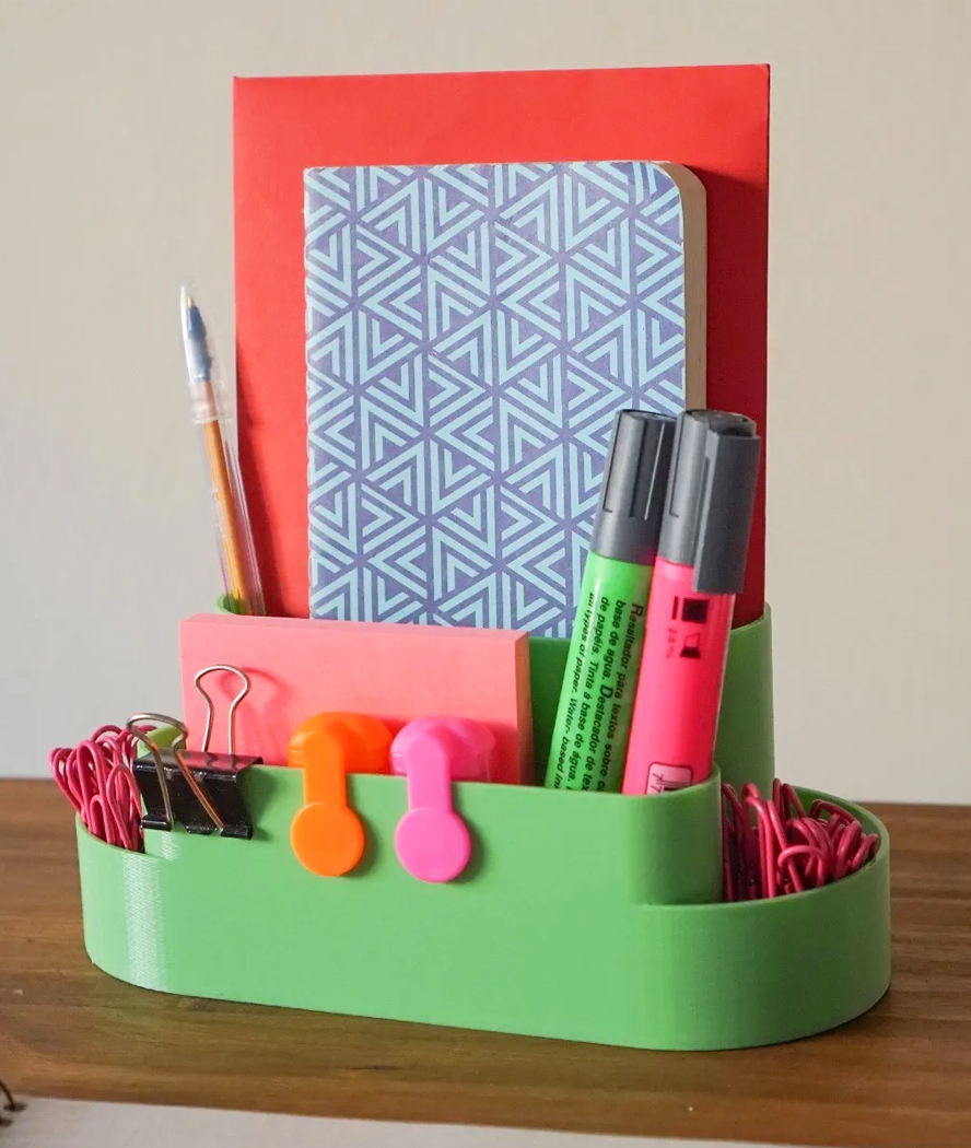 Organizador de escritorio con materiales ecológicos biodegradables impresos completamente en 3D. Diseño e impresión propios.